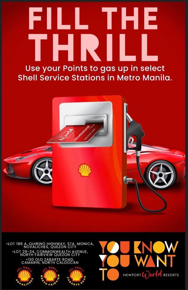 This ad promotes a "Points for Gas" offer. I wanted the image to explain the promo instantly without reading too much text. I placed the membership card inside the gas pump to show exactly how it works. I kept the style bold and red to match both the Shell and Newport brands.